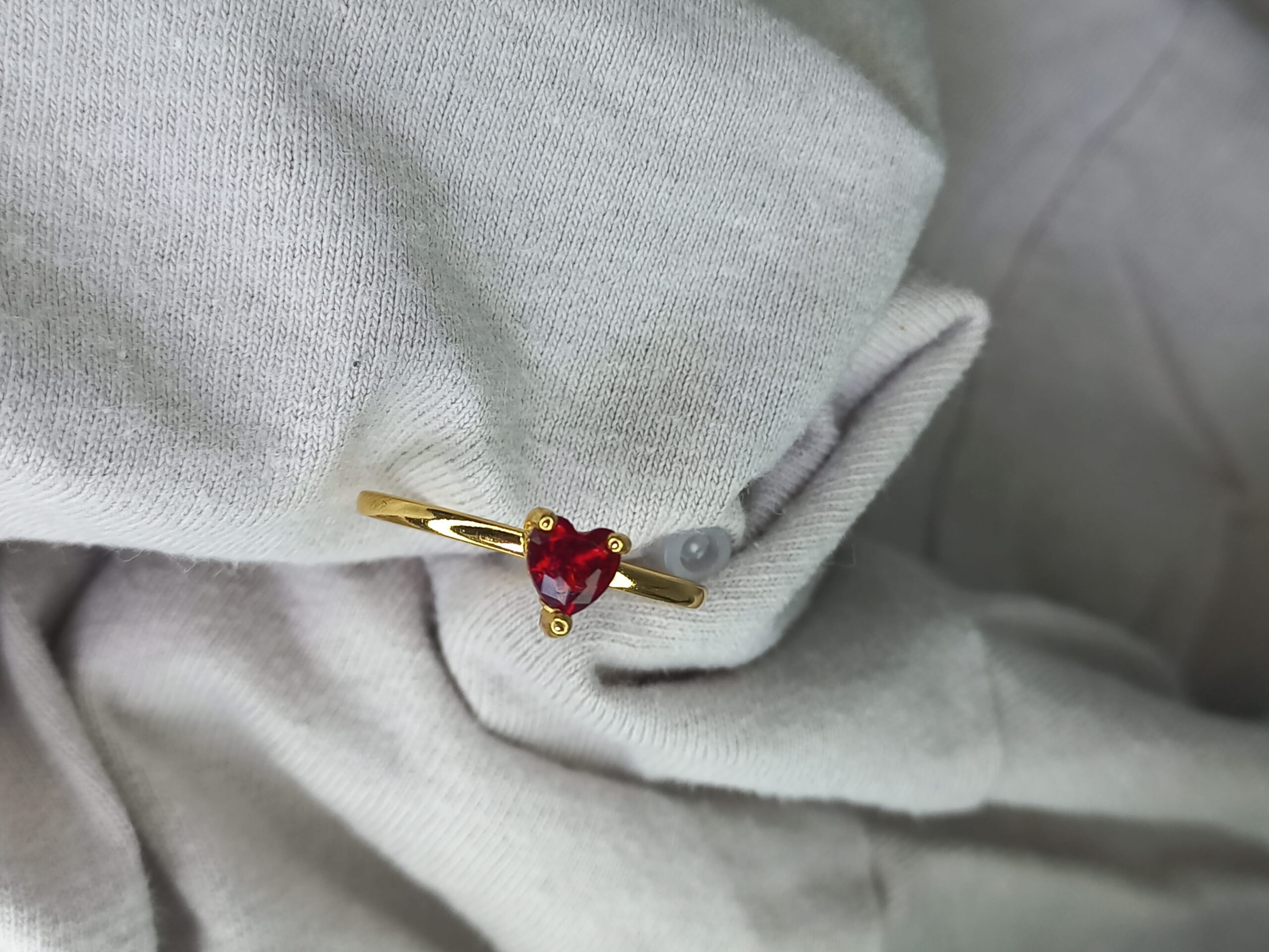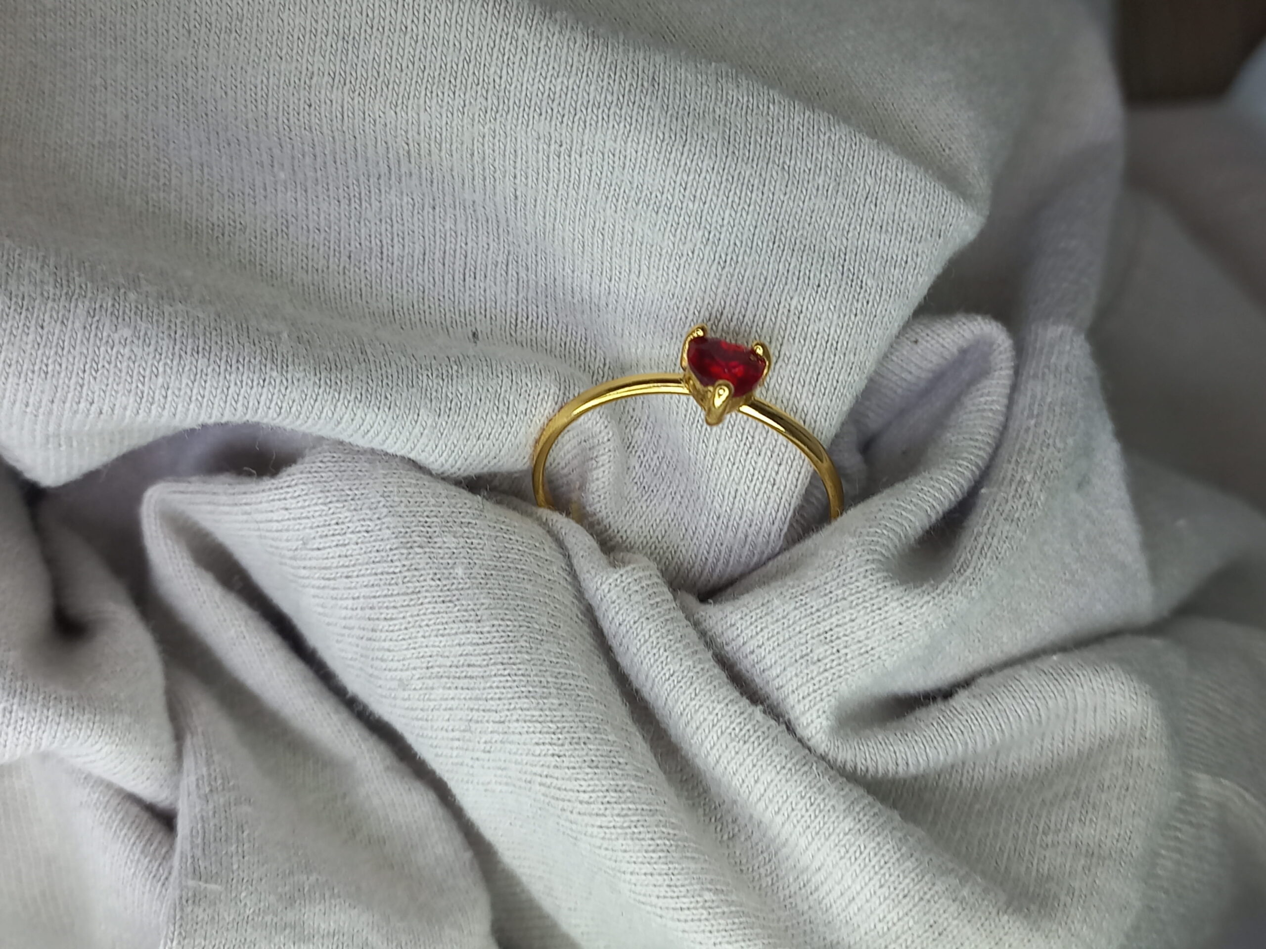 Anel solitário banhado a ouro tamanho 20 com pedra vermelha.