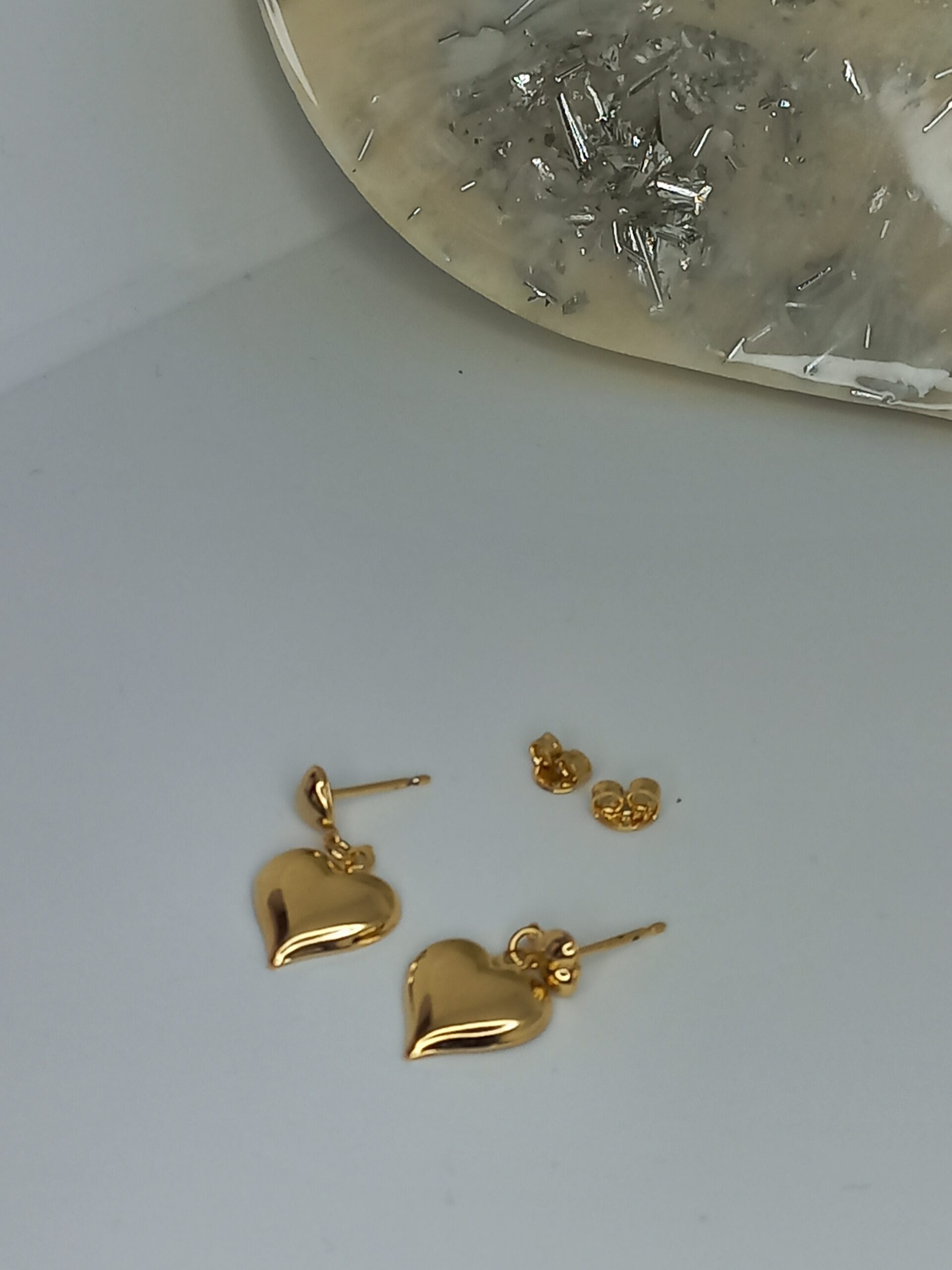 Brinco de gota pequena com pingente de coração.