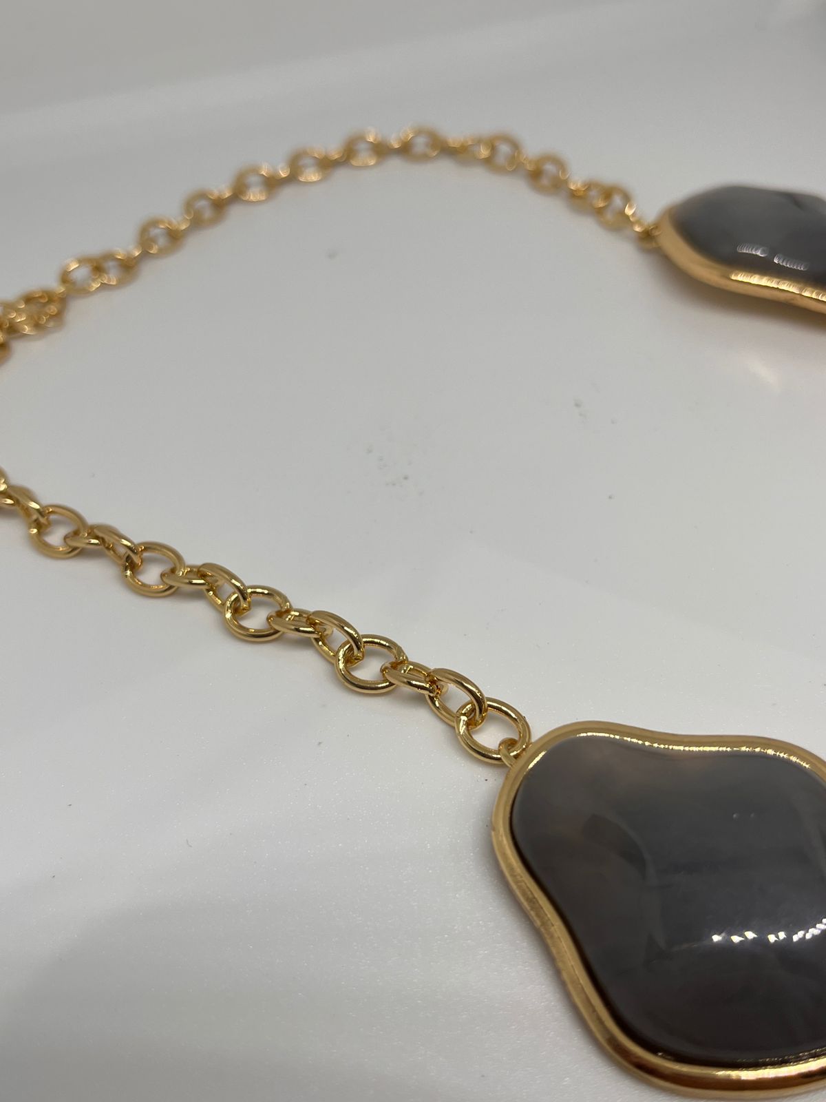 Colar Orgânico Maximalista Pedras Ovais de Resina Cinza