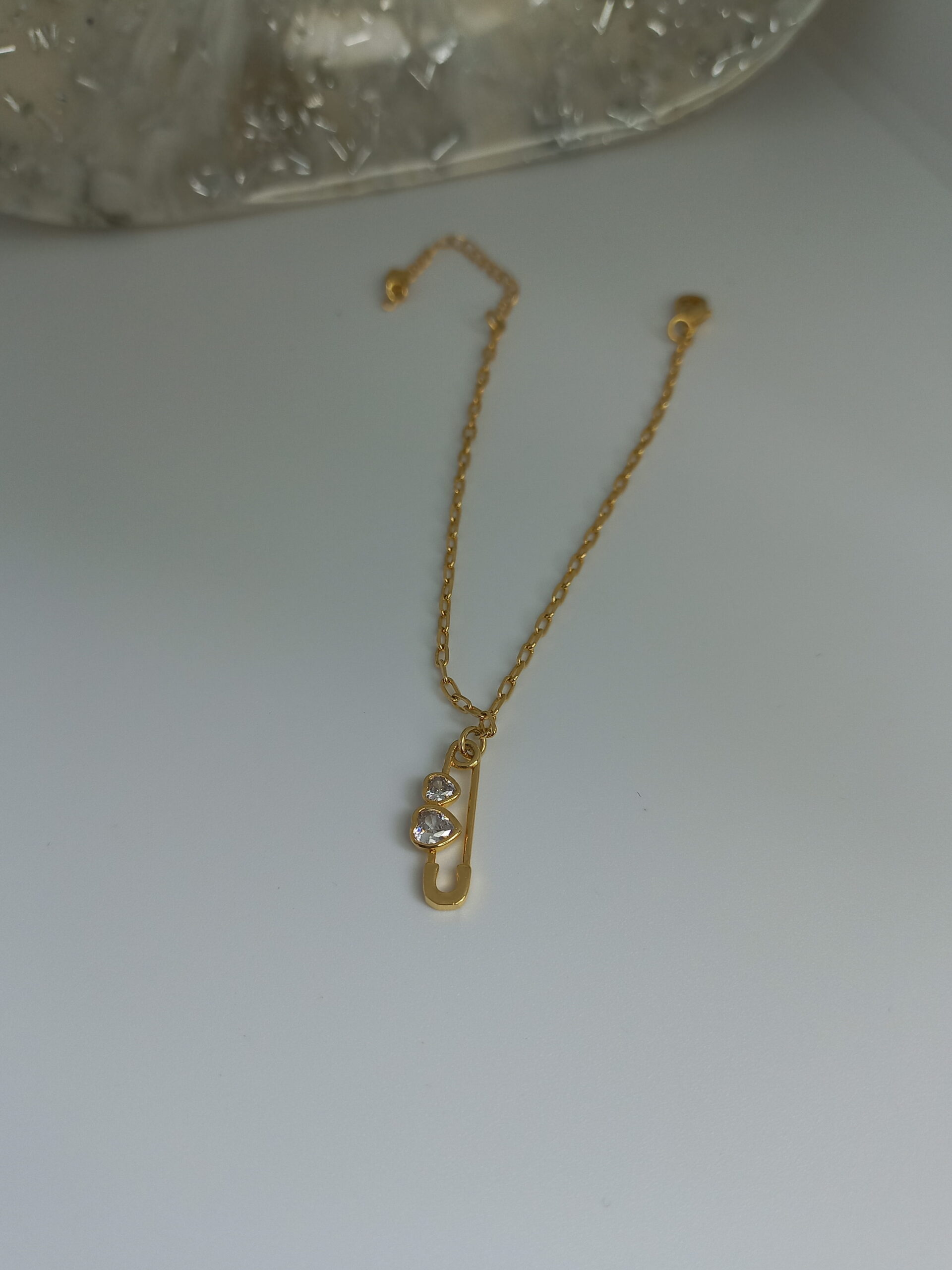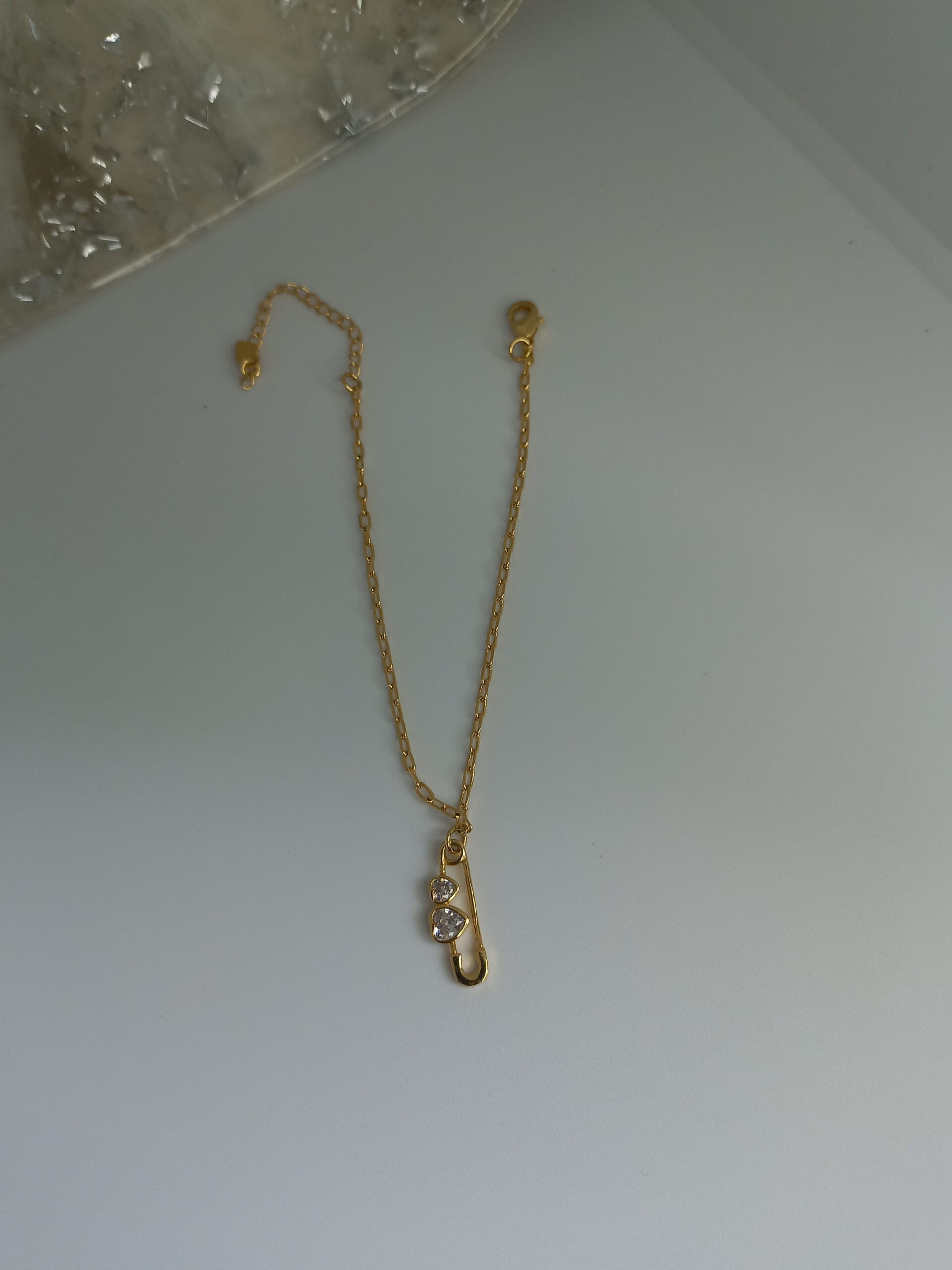 Pulseira banhada a ouro, alfinete com 2 corações.